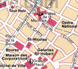 I was in love with the map. Palais des Congrès, Gare Centrale, and Notre Dame aux Riches Claires. Place names, streets, and cultural markers, all in French.
