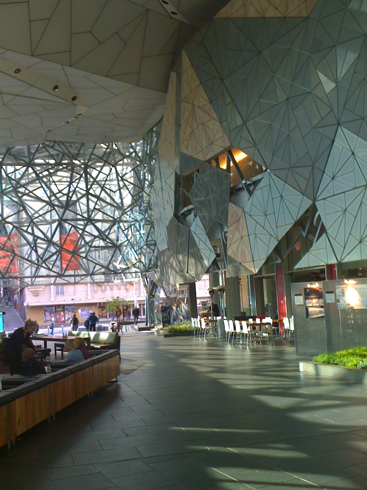 I didn’t attend the closing wrap-up session for the conference. Luckily, Jamie Bennett from the National Endowment for the Arts did and you can read his report here. I also didn’t make it to Melbourne’s much lauded Immigration Museum, which now guarantees me a return trip to the city. But on the final day, I did take a walk up to Federation Square, the center-city cultural hub designed for the wired global future (I picked up free wifi the second I got off the free tram). The nearby Arts Centre is undergoing renovation and I appreciated the Melbourne Festival’s curatorial engagement with that predicament.
